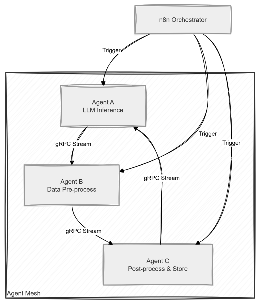 After some research, we settled on gRPC for communication and n8n for orchestration.