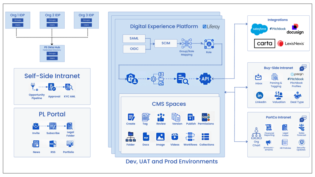 The firm implemented Liferay DXP as the digital layer connecting users, workflows, content, and third-party systems across the investment lifecycle.
